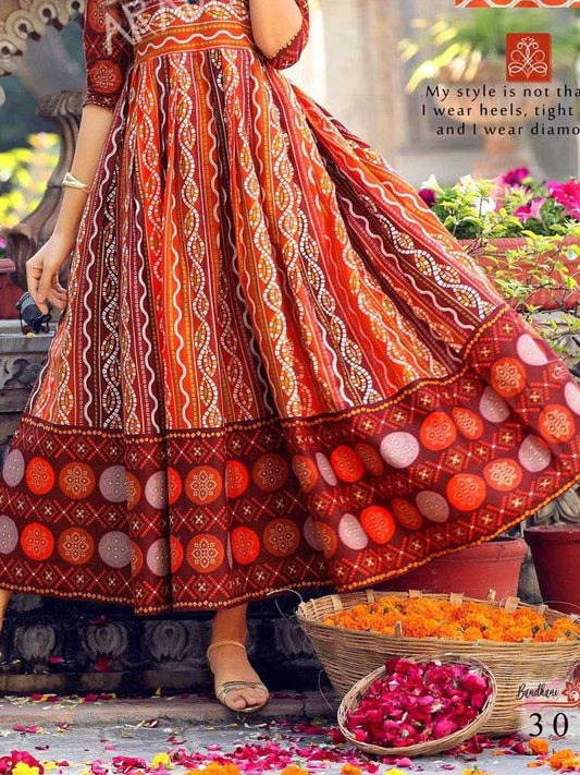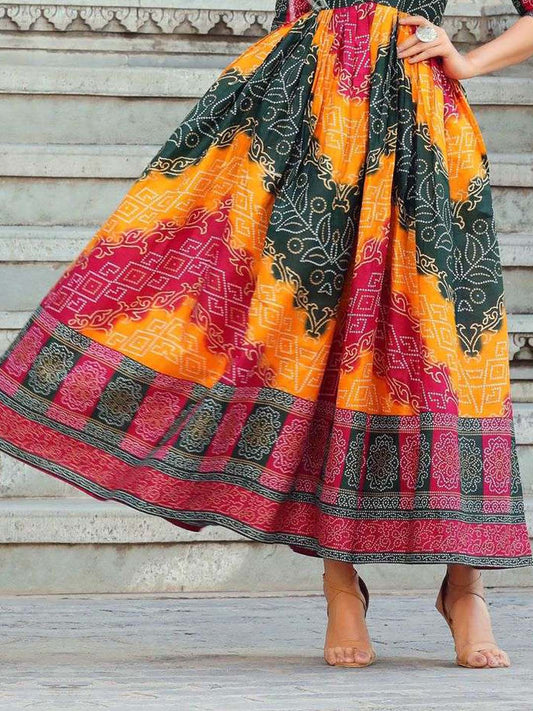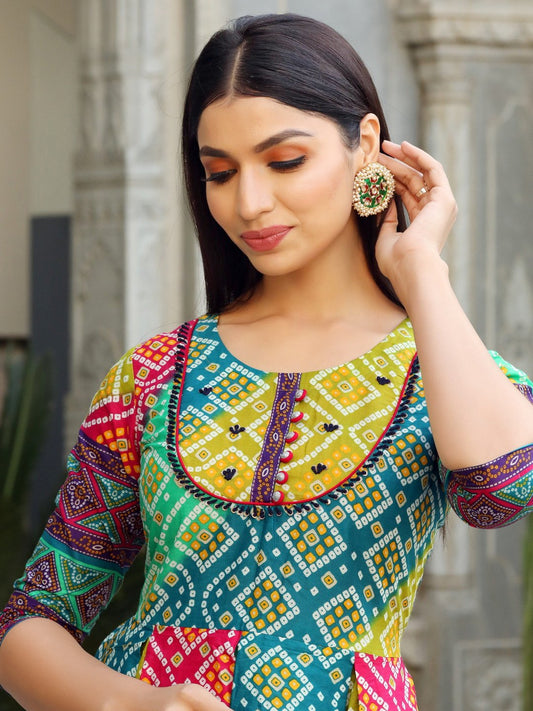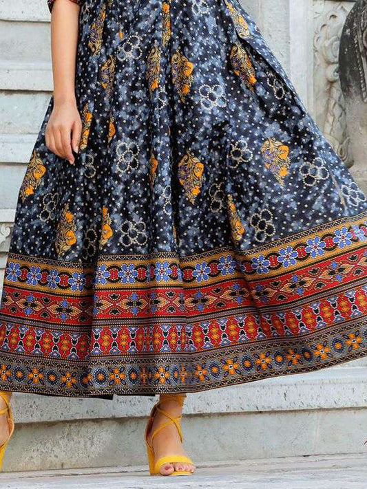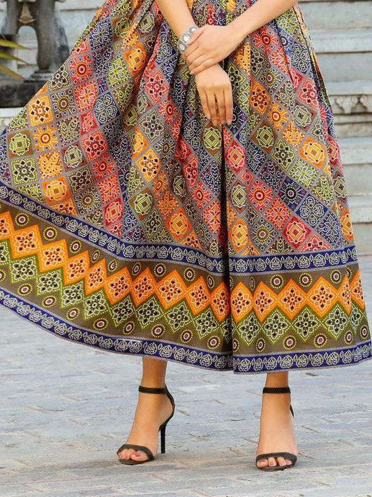 Multicolor Printed Flared Cotton Long Kurti