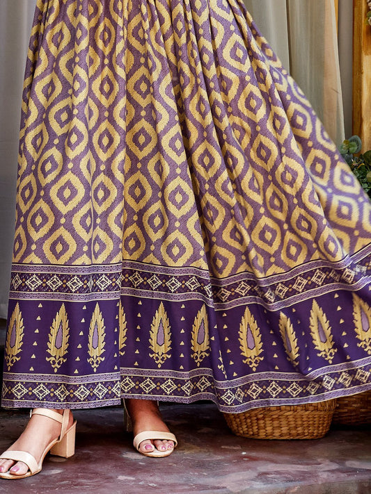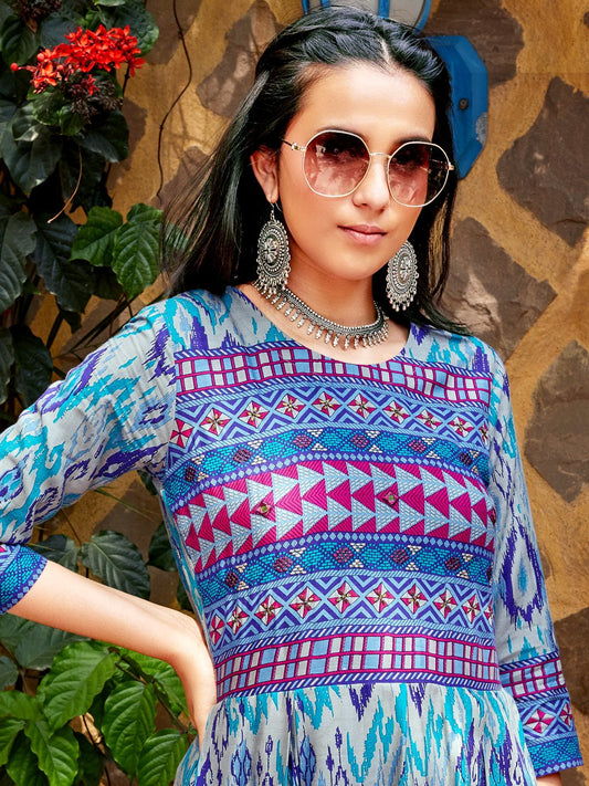 Purple Ikat Printed Rayon Designer Long Kurti