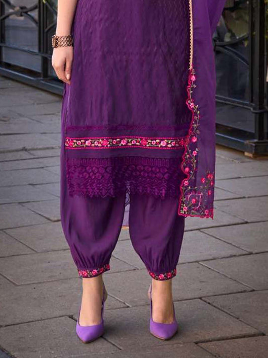 Purple Handwork And Embroidery Afgani Stitched Suit