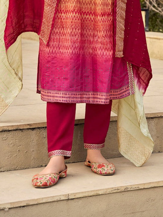 Hot Pink Silk Base with Embroidery Sequence Work Stitched Suit