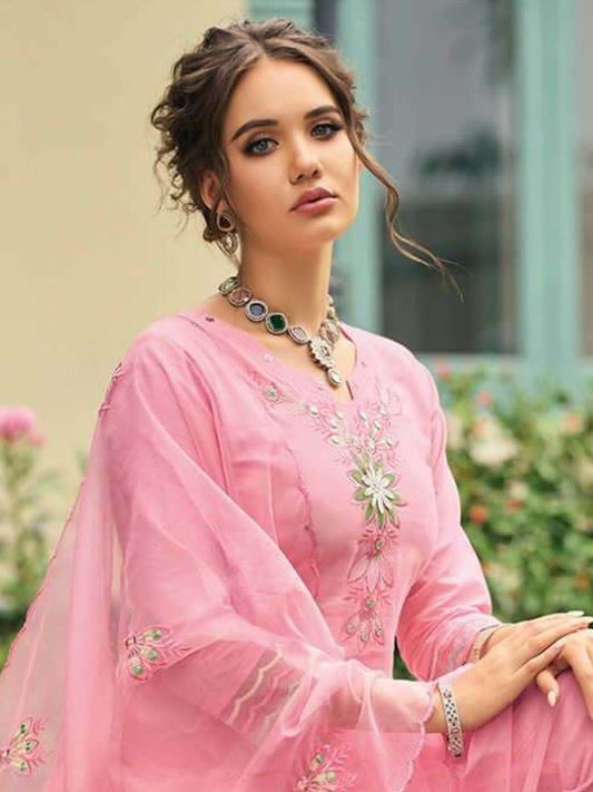 Pink Desginer Embroidered Stitched Suit Set With Dupatta