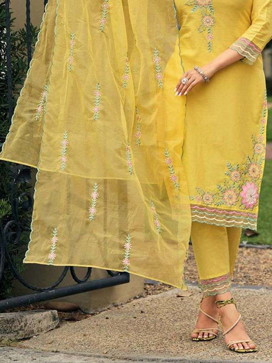 Yellow Premium Embroidered Stitched Suit Set With Dupatta