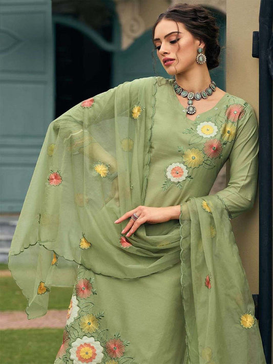 Green Desginer Embroidered Stitched Suit Set with Dupatta