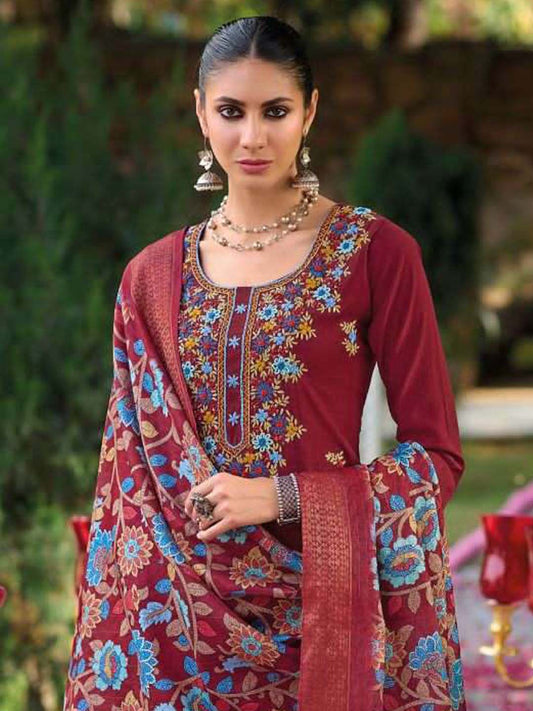 Green Wine Exclusive Embroidered Stitched Suit Set With Dupatta
