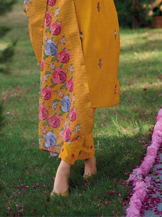 Yellow Desginer Embroidered Stitched Suit Set With Dupatta