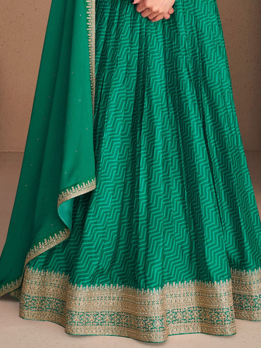 Embellished Green Chinon Silk Zari Stitched Gown with Dupatta