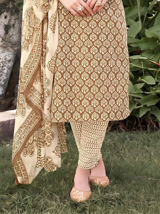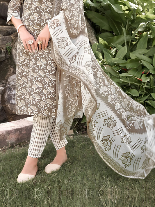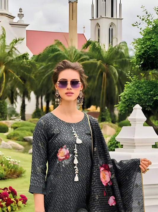 Charcoal Floral Pure Viscose Print Silk Stitched Suit Set