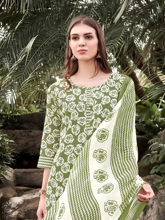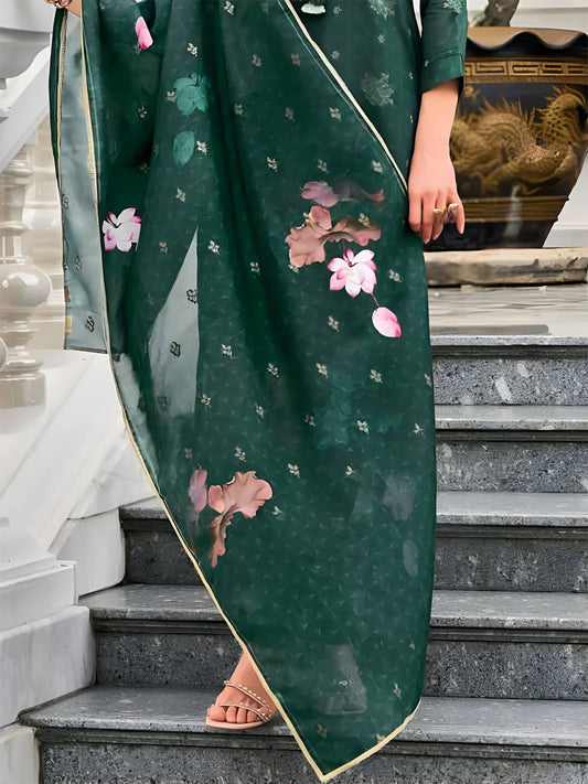 Green Floral Pure Viscose Print Silk Stitched Suit Set