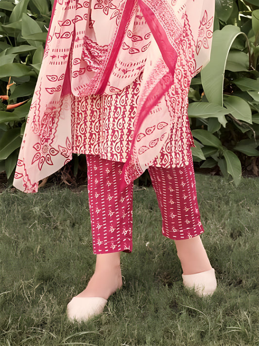 Ruby Floral Pure Viscose Print Silk Stitched Suit Set