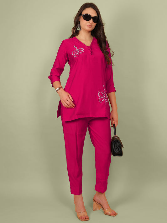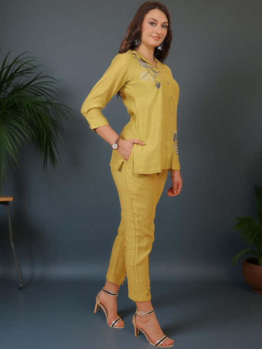 Lemon Yellow Casual With Embroidery Co-ord Set