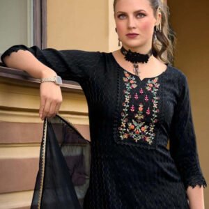 Black Exclusive Embroidered Stitched Suit Set With Dupatta