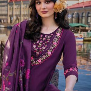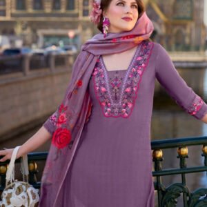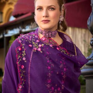 Purple Yoke Embroidered Stitched Suit Set With Dupatta