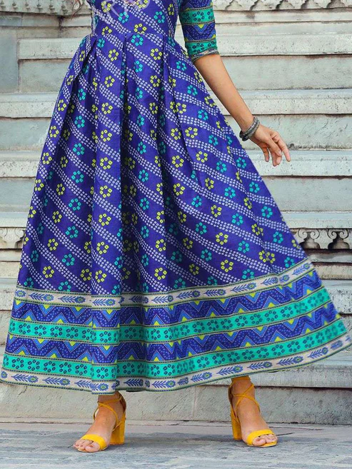 Be the first to review “Blue Printed Flared Cotton Long Kurti”