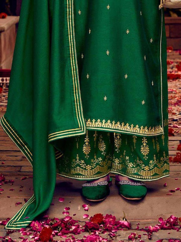 Green Fancy Work Stitched Suit...