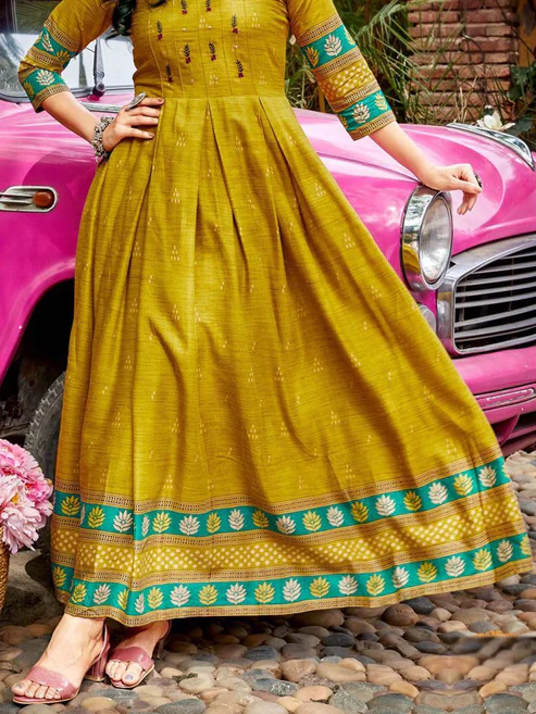 Be the first to review “Green Ikat Printed Rayon Designer Long Kurti”