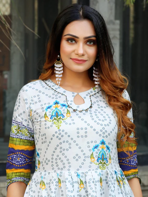 Be the first to review “White Printed Flared Cotton Long Kurti”
