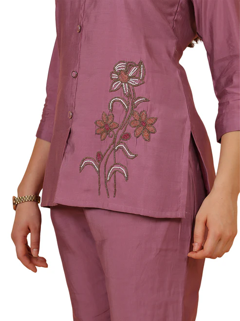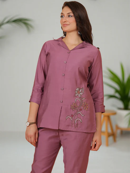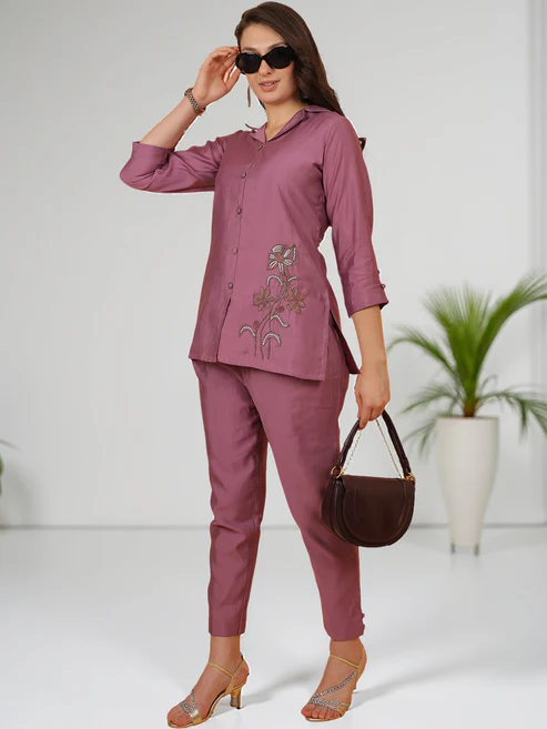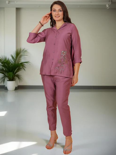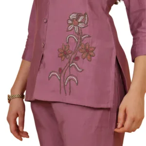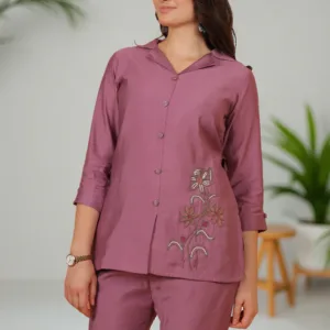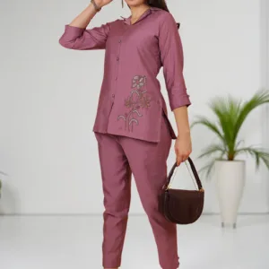 Be the first to review “Wine Casual With Embroidery Co-ord Set”