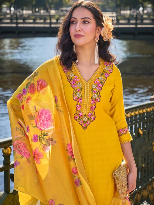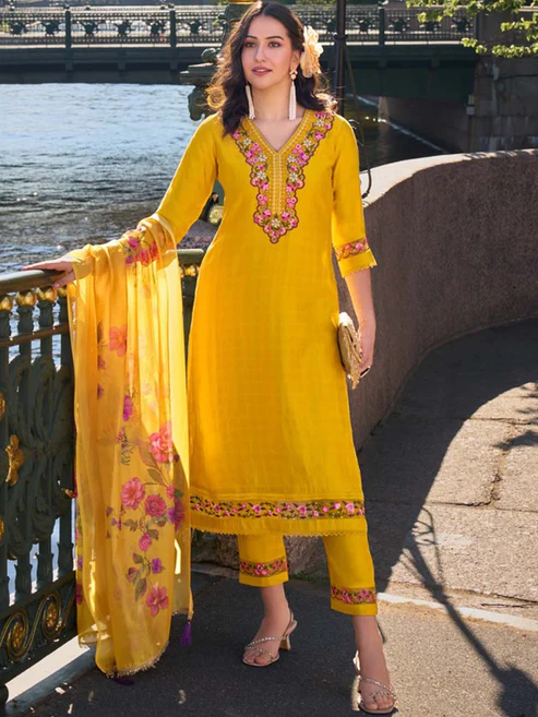 Packet Content : 1N Stitched Kurta,1N Stitched Pants,1N Dupatta